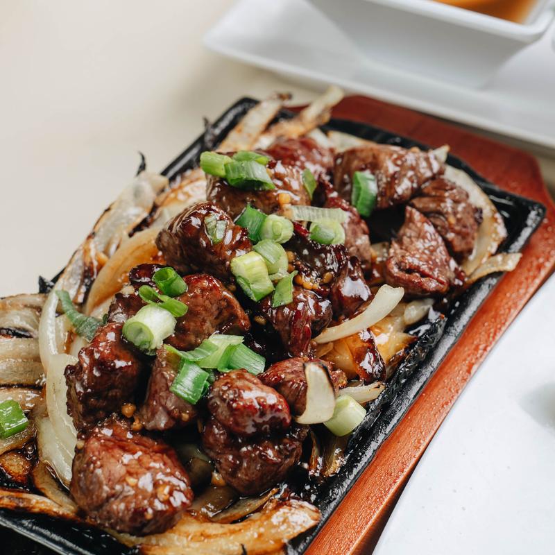 Lunch $28.00 | Dinner $39.00 • Seared cubed Filet Mignon marinated in our house special soy, served on Sizzling Bed of Onions | Add Lobster +$28.00