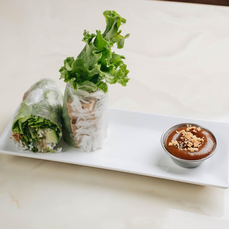 All Spring Rolls are freshly rolled in Rice Paper with Vermicelli, Lettuce, Cucumbers, Mint, and Sprouts